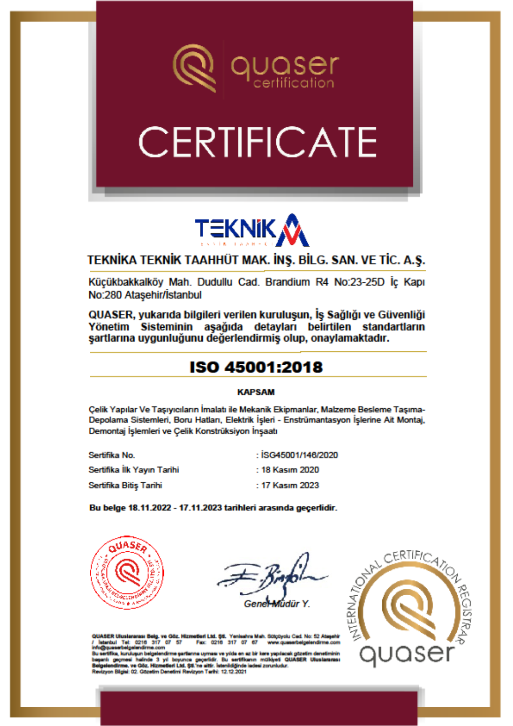 Muhittin Aktaş’ın 2023 yılında TEKNİKA’nın %100 hissesini devir alması ile oluşan güç birliği ile endüstriyel imalat ve montaj sektöründe kalite ve iş güvenliğinden taviz vermeden, en ekonomik şartlarda, çözüm ortağı olarak hizmet vermek amaçlanmaktadır.